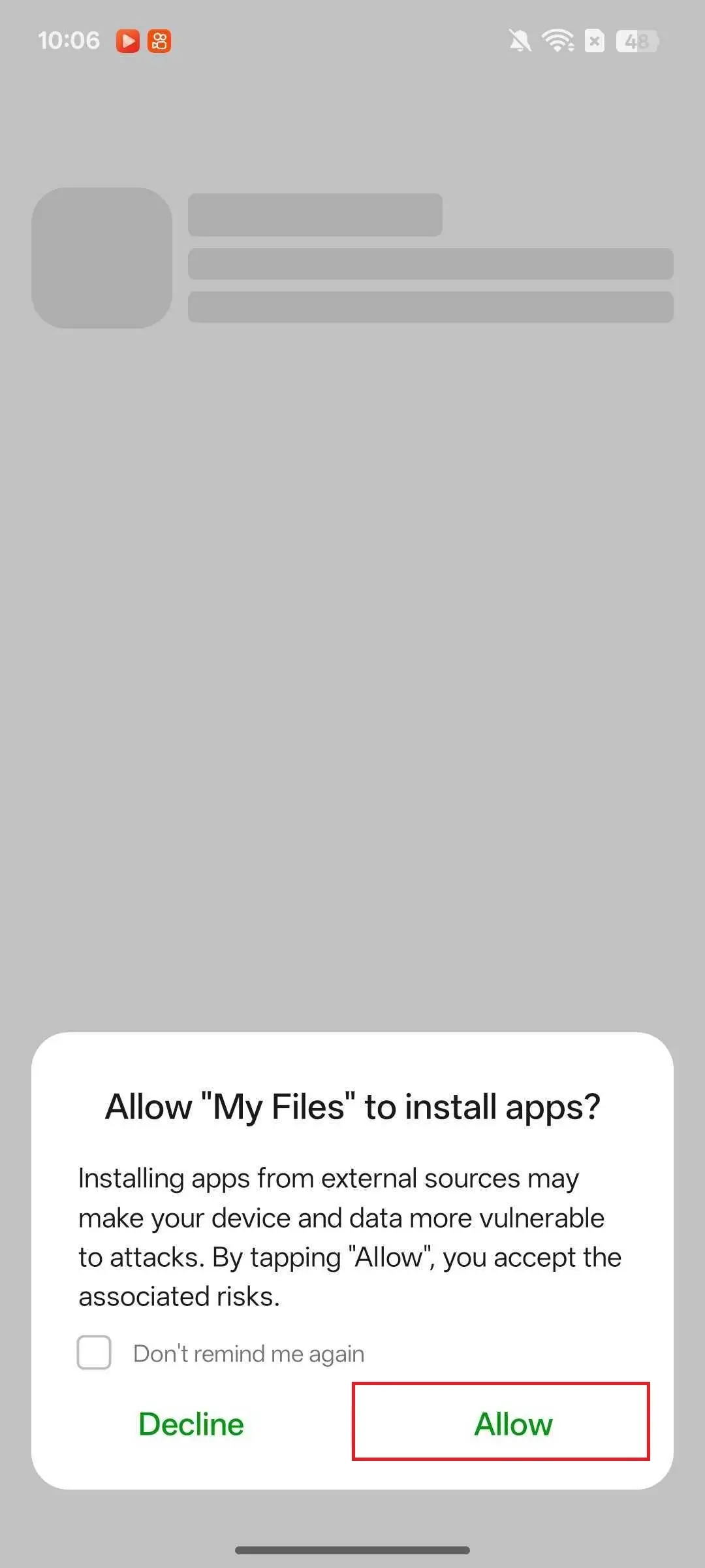 Click Allow File Manager to install the application.